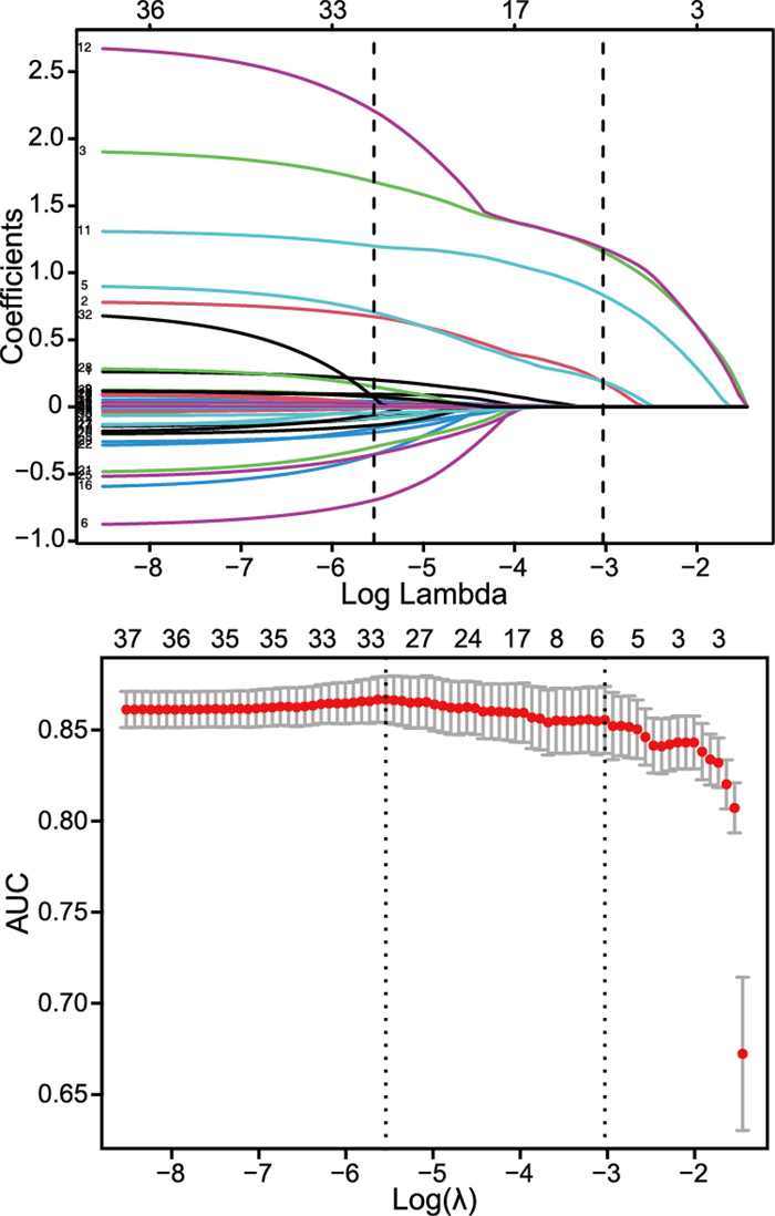 目的 分析及筛选影响老年肺部耐碳青霉烯肠杆菌(CRE)感染的高危因素,构建并验证风险Nomogram预测模型。 方法 回顾性对安徽地区共894例的老年(≥60岁)肺部感染痰培养为肠杆菌科细菌的住院患者的临床资料进行收集,抽取2个医院作为验证组(250例),其余作为建模组(644例),使用单因素Lasso回归和多变量logistic回归分析对建模组数据进行分析,确定CRE感染的独立危险因素。构建Nomogram预测模型, 并对模型进行多中心验证。 结果 气管插管≥72 h、长期卧床、抗生素使用种类≥2种、脑血管疾病、营养不良是老年肺部耐碳青霉烯肠杆菌感染的独立危险因素。基于上述5项独立危险因素,建立预测风险Nomogram模型,建模组和验证组2组AUC值分别为0.862、0.858;且Hosmer-Lemeshow检验可见建模组P=0.761,验证组P=0.339;Decision曲线分析显示,模型在较大的阈值内获益性均良好。 结论 构建老年肺部CRE感染风险预测模型具有一定的临床意义,能够针对可控因素进行早期个体化干预。 Abstract:Objective To analyze and screen the high-risk factors for CRE infection in elderly people with pulmonary infection, and to construction and validate a risk nomogram prediction model. Methods Clinical data of a total of 894 elderly (≥60 years old) hospitalized patients with pulmonary infection cultured by Enterobacteriaceae bacteria in Anhui Province were retrospectively collected. Two hospitals were selected as verification group (250 cases), and the rest were used as training group(644 cases). Univariate Lasso regression and multivariate logistic regression analysis were used to analyze the modeling group data to identify independent risk factors for CRE infection. Construct a Nomogram prediction model and verify the model in multiple centers. Results The independent risk factors of CRE infection in the elderly were endotracheal intubation≥72 h, long-term bed rest, ≥2 types of antibiotics, cerebrovascular disease and malnutrition. Based on the above five independent risk factors, a Nomogram model for predicting risk was established, and the AUC values of the training group and verification group were 0.862 and 0.858. The Hosmer-Lemeshow test shows that the training group P=0.761 and the verification group P=0.339. Decision curve analysis shows that the model has good benefit within large thresholds. Conclusion The construction of a risk prediction model for the risk of CRE infection in the lungs of elderly people have some clinical significance, allowing early individualized intervention according to controllable factors. -