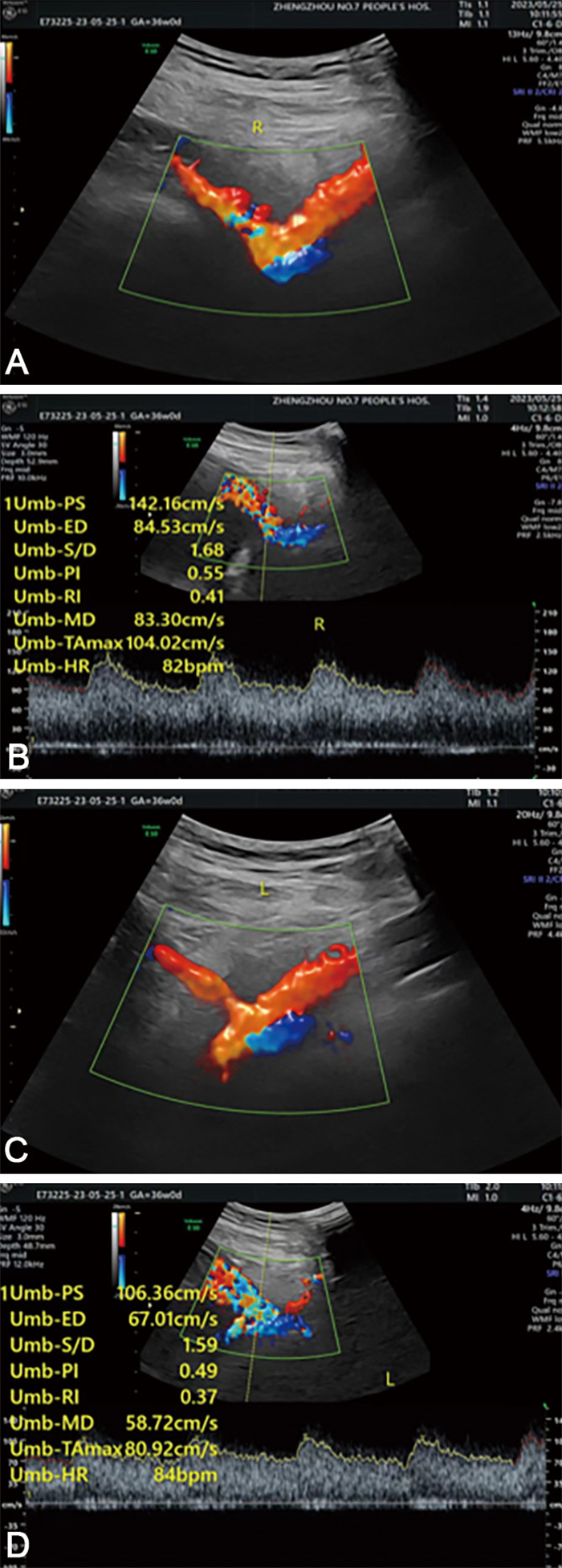 Table 1. Comparison of serum AFP levels, PI, RI, and S/D values between two groups of patients at different gestational weeks (x ±s)